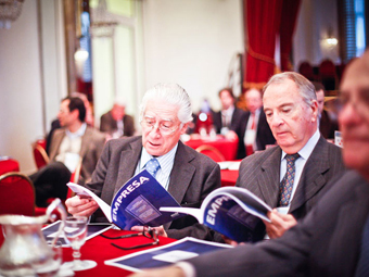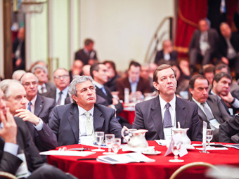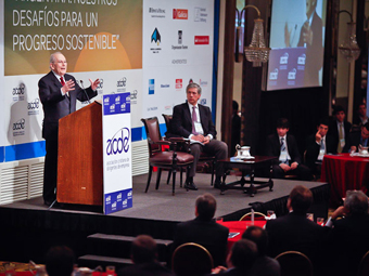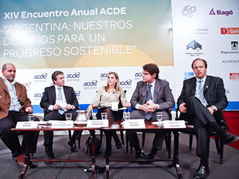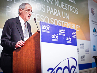 José María Fanelli en su exposición con Sergio Berensztein y Marita Carballo